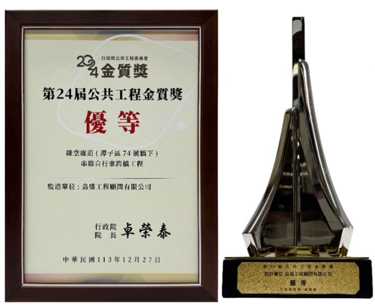綠空廊道(潭子區74號橋下)串聯自行車跨橋工程獲得「第24屆公共工程金質獎-優等」