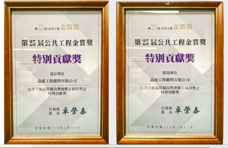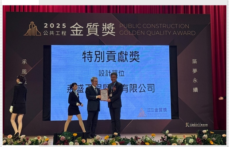 本公司榮獲「第25屆公共工程金質獎-特別貢獻獎」 設計及監造單位